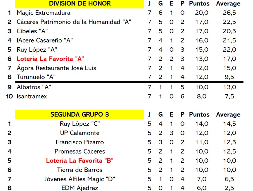 Lotería La Favorita finaliza en el puesto 7º .Clasificación Final. |